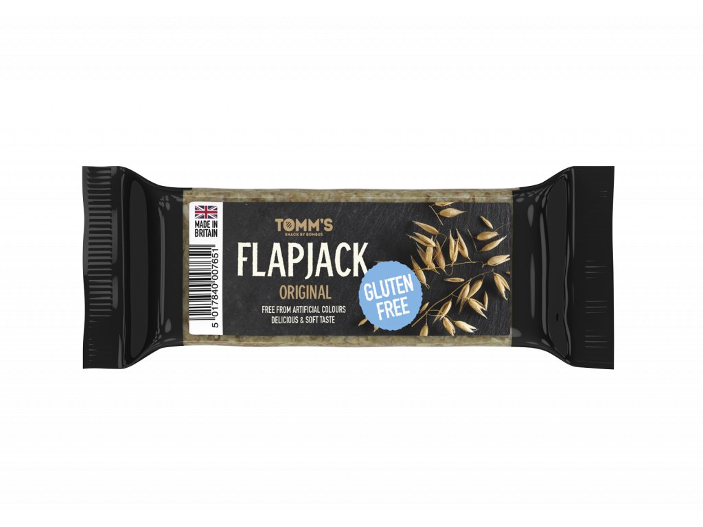 Bezlepkový Flapjack Tomm´s je pečená ovesná tyčinka, vyrobená v Anglii dle originální receptury. Díky vysokému podílu těch nejkvalitnějších bezlepkových ovesných vloček plně zasytí a dodá potřebnou energii kdykoliv během dne. Je ideální svačinkou, kterou můžete mít vždy po ruce. Gluten free Flap Jacky Tomm´s mají jemnou, lahodnou chuť, neobsahují lepek, umělá barviva ani aromata.