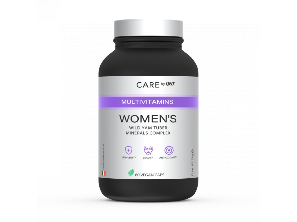 QNT CARE Multivitamínový dámský Tento doplněk stravy je poklad „vše v jednom“, který vám umožní co nejlépe vyplnit nutriční nedostatky vitamínů a minerálů ve vaší stravě. Snadno stravitelný, Women's poskytuje denní přísun vitamínů a minerálů ideální pro návrat do formy a zvládnutí náročných dnů. Dále obsahuje wild yam, hlízu, která podporuje produkci přirozených ženských hormonů. Tento doplněk je ideálním každodenním partnerem, díky kterému budete vyzařovat pohodu a krásu. ?